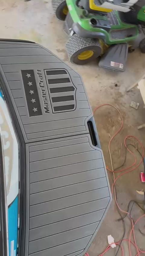The EVA floor is 1/4″(6mm) thick two-color pad. You can choose your colors, texture and faux teak option. Additional custom text logos can also be incorporated on EVA floor. All routed logos and beveled edges will show the bottom color selected. All EVA floors come with marine backing glue. All EVA floors listed on our online store are “made to order” and not stocked so please allow up to 2-3 weeks for delivery.